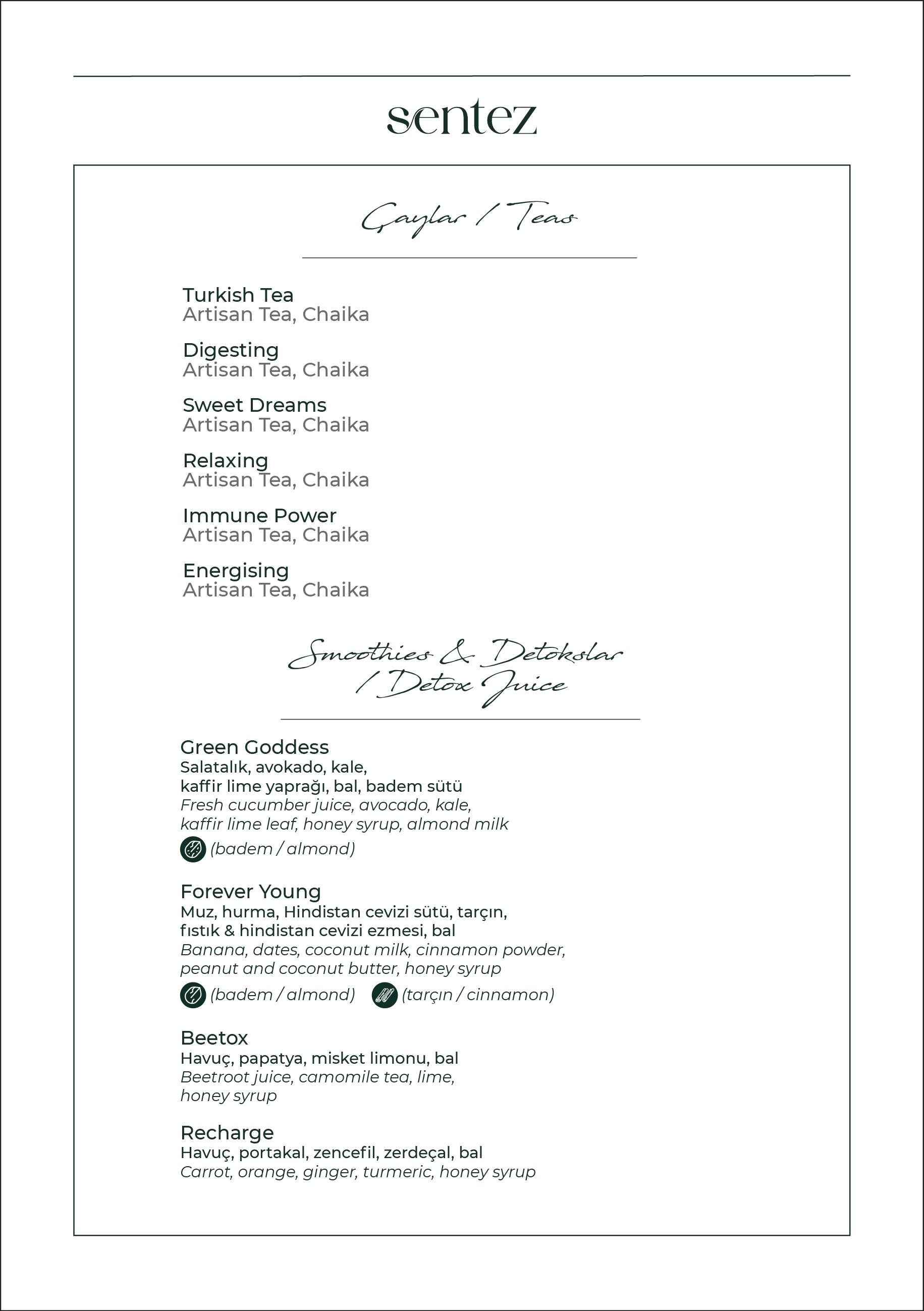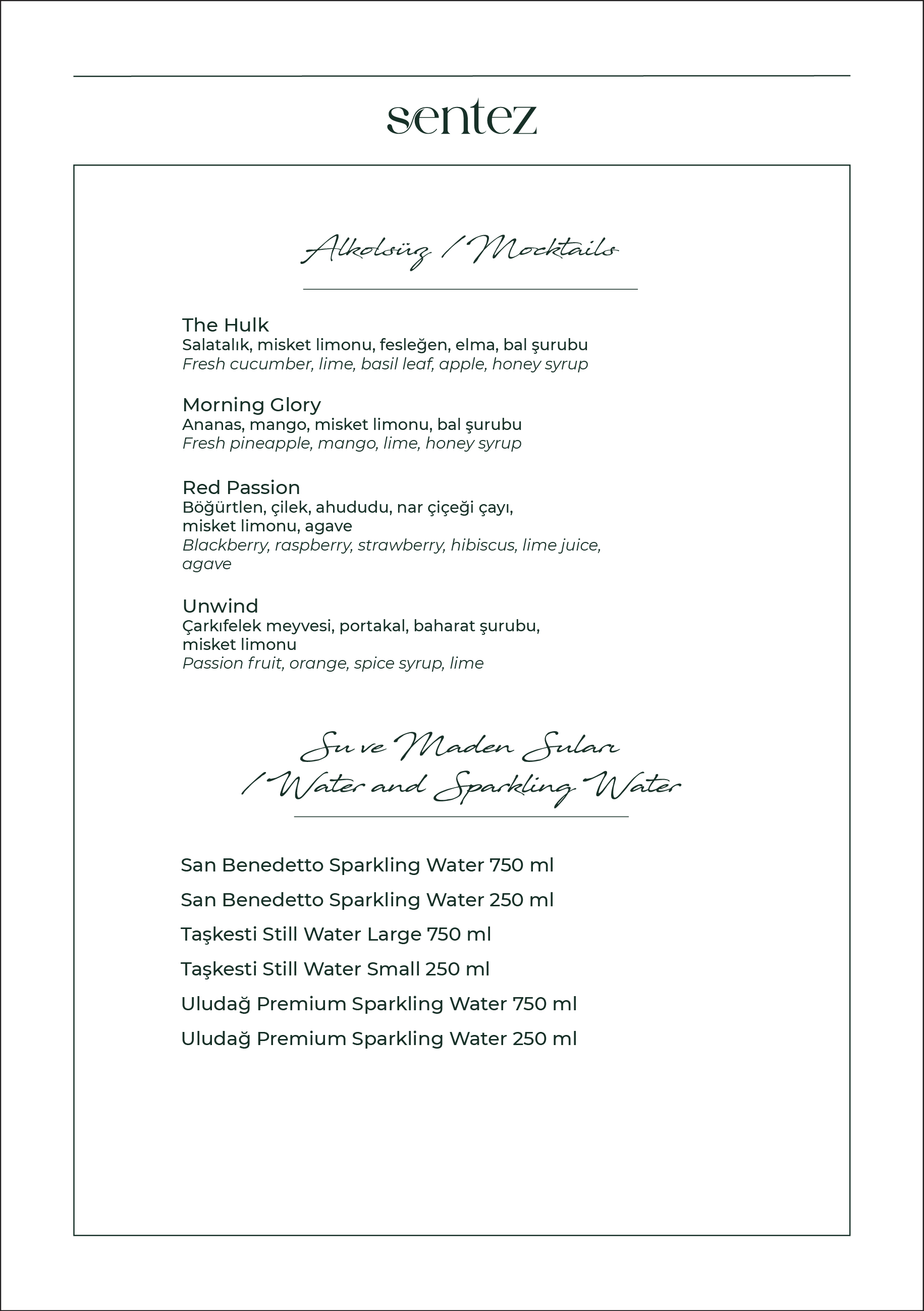 info@sentezrestaurant.com +90 545 378 5310 +90 212 699 8888